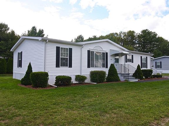 Just right! This delightful 3 bedroom, 2 bath home offers convenient one floor living at Pine Hill Estates,a (55+) community. Pride of ownership shows the moment you step into this lovely 2002 Marlette single owner home. Features include a spacious eat-in kitchen with upgraded appliances and solid oak cabinetry, central air conditioning, and master suite with 60" walk in shower. A covered porch affords you the opportunity to enjoy the outdoors and an oversized utility shed is just right for hobbies or a handyman. Why not schedule a visit today and see the perfect retirement home.