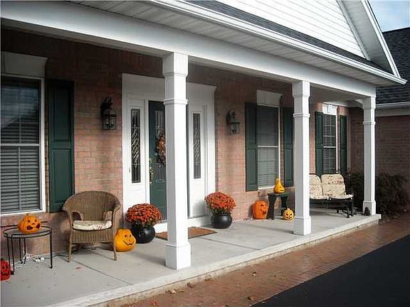Visit this EXCEPTIONAL custom, L-shaped ranch on a special wooded, super private lot! Over $60,000 in landscaping & sprinkler system. Attractive stacked stone wall & gardens. Entertain on your awning covering stone patio. Custom kitchen cupboards w/corian countertops, hardwood flooring in kitche, hallway & foyer. Great room, dining room combination, very large kitchen eating area w/slider to deck & breakfast area. Master suite w/double walk-ins. Guest bedroom w/private bath. Full 12 course basement; poured concrete walls, w/rec room or office. Walkout to 3-car garage. Generator included.