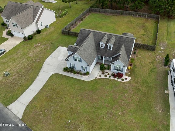 Situated in the prestigious Kings Heritage Farm, this charming home is bursting with curb appeal and modern features. Nestled on a large 0.81-acre lot, it boasts a wide driveway with ample parking space and a convenient 2-car garage. The home offers first-floor living with a bonus room, showcasing an open-concept floor plan with hardwood floors, vaulted ceilings, and an abundance of natural light. The kitchen is a chef's delight with granite countertops, a subway tile backsplash, stainless steel appliances, a pantry, and a cozy breakfast nook. The spacious master bedroom features trey ceilings, a large walk-in closet, and an ensuite bathroom complete with dual vanities and a tiled walk-in shower. There are two additional spacious bedrooms and a full bathroom. The laundry room leads upstairs to a huge bonus room with extra storage space. The large, fenced-in backyard backs up to a wooded area, providing privacy and a perfect space for outdoor activities. Kings Heritage Farm is a private community with low HOA fees, situated in the award-winning Topsail school district. Don't miss the opportunity to make this exceptional property your new home!