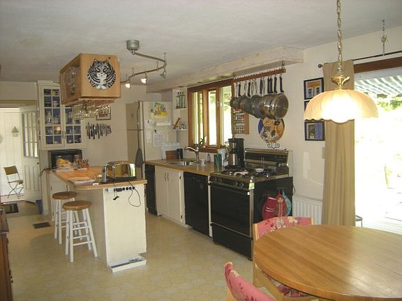 This house sits up on a sunny knoll with views of hills across the valley. Big, level back yard has gorgeous perennial gardens, small water feature with fountain, large back deck with awnings, and all this surrounded by beautiful woods for privacy. Terrific one floor living no steps from garage through breezeway and into house. Living room and eat-in kitchen both have sliding glass doors opening to front and back decks. Everything is in great condition and interior has been newly painted. Owner hired Efficiency Vermont to assess all areas of the house for heat loss and all the recommendations have been completed.