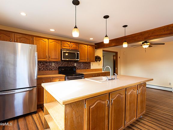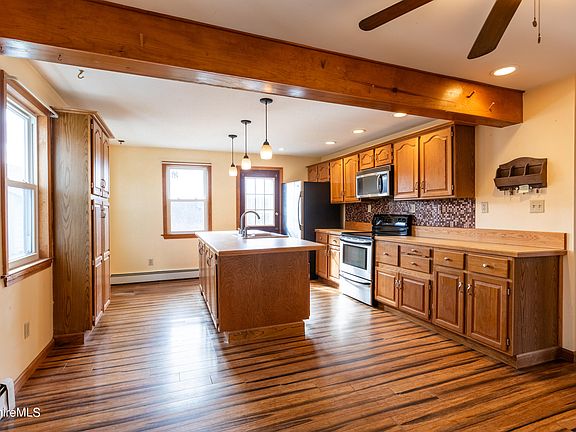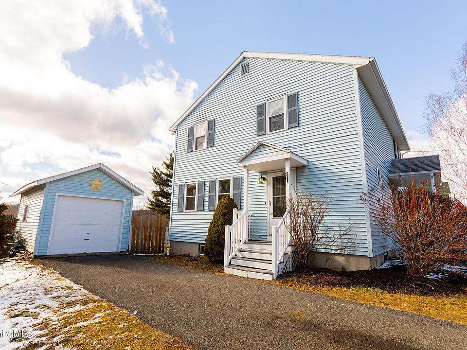 Enjoy this spacious & charming Colonial Style home! Relax on the large deck overlooking the river & stunning sunsets! The heart of the home is the welcoming kitchen with large island & bamboo flooring. The home features convenient natural gas heat, and town water & sewer. The living room features a beautiful wood burning fireplace, and the home offers a first floor room with backyard views, great for a bedroom, home office, or a den. Upstairs, enjoy an open spacious hallway, and four additional generously sized bedrooms. The bathroom features a new shower & flooring. The home also offers a partially finished basement, large, flat fenced in yard, and a one car garage. Make this beautiful property your new home sweet home!