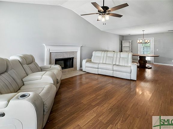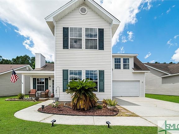 Welcome to your new home! This lovely well maintained home has so much to offer. The Living room/dining room with wood flooring and a beautiful fireplace opens to a stylish kitchen with glass tile backsplash and recently replaced stainless steel appliances. The Master bedroom with ensuite is downstairs and two bedrooms and a large bonus/ 4th bedroom upstairs. The exterior offers a large privacy fenced back yard with two storage sheds. The home is in a prime location! Situated very close to the new development off of I-16, a short drive to Hunter AAF, or hop onto I-95 to Ft Stewart. Also, just 20 minutes to downtown Savannah. The community has a pool, playground and a fishing dock.