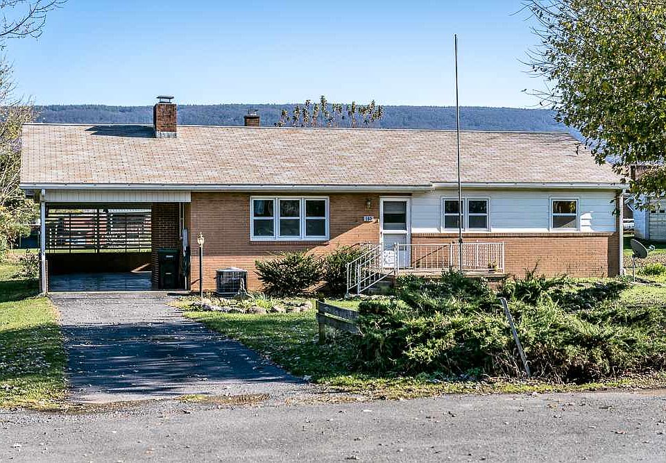 Cute brick and vinyl sided house with attached carport and back stone patio. Nice, level lot in town. Refinished Hardwood floors throughout the main level consisting of 3 bedrooms and a hallway full bath. The finished basement boasts extra living area and a propane fireplace for ambience. House central vacuum also included. Wood burning fireplace w insert in the living room. Cast iron tub was reglazed and floors in bath and kitchen have been replaced. Garage and extra lot not included in this price. First right of refusal applies when the house goes under contract. After that the lot with garage will be listed separately. Lot is .459 acres. Property line to house is visibly staked.