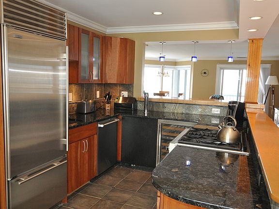 2bd/2ba Waterfront Condo Furnished for Rent, 2 garages spaces, gas fireplace, updated kitchen with granite counters, stainless steel appliances and bar tap. Deck from the master and living room overlooking the water, walk to anywhere in the Old Port! Tenant pays Electric & Heat (averages $60 in winter for heat). Dogs ok. Available Oct 1.