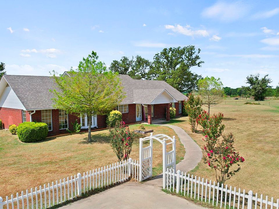 If you've always wanted a country home with a partial white picket fence that greets you, look no further! This 3-bedroom, 2 bath brick charmer outside of historic Mount Vernon sits on 4.692 acres is the perfect place to call home. Two living areas, and 2 dining areas make this a perfect place to entertain family and friends for years to come. Natural light illuminates the open concept floor plan. Beginning with a living area large enough for an additional dining nook and has built-ins perfect for a home office. The kitchen features a breakfast bar island that faces the family room and dining areas.The primary homeowner's large bedroom has an en suite bath with soaking tub and shower, as well as separate vanity areas. A carport for 2 vehicles located behind the backyard making it an easy access from the home. To booth a 1400 sq ft metal storage building has a 110 and 220 volt, and 2 attached containers on each side making this a perfect man cave. Call today to schedule your tour.