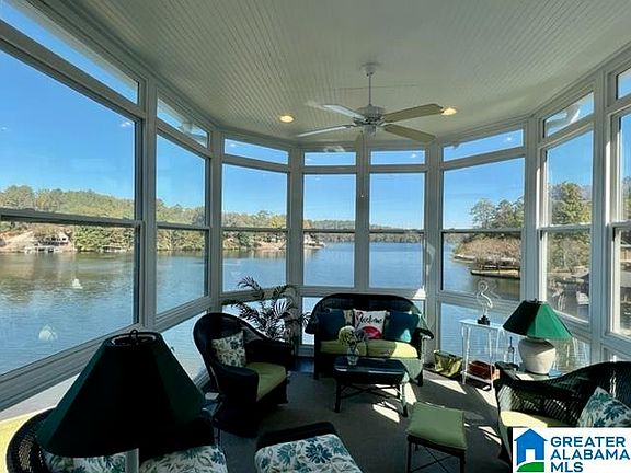 If perfect is what you're looking for on Lake Mitchell, this is it! The detail is amazing!! This lovely, Cape Cod style home on Lot 19 in the Ridge is in pristine condition! Custom house built in 2011 with lots of amenities. Stone and James Hardi siding, flagstone steps, walks, and porches. Multiple porches to take in the gorgeous views, glassed in sunporch, and a fabulous boathouse with a large porch and sundeck! Full irrigation system, generator, and Termite Bond with APS. Underground propane tank 3 HVAC units, one for each level. Plantation shutters, hardwood floors in all living areas, carpet in bedrooms, large walk in closets, tile baths, surround sound, and multiple large storage rooms. 2 Car Garage, Large bonus room, and office with one half bath. Primary Bedroom suite on main, three Bedrooms downstairs, one with private bath, Jack n Jill bath for other two bedrooms. Stone fireplace with gas logs. All window treatments remain. Gas fireplace in living room. Commercial