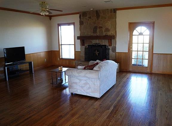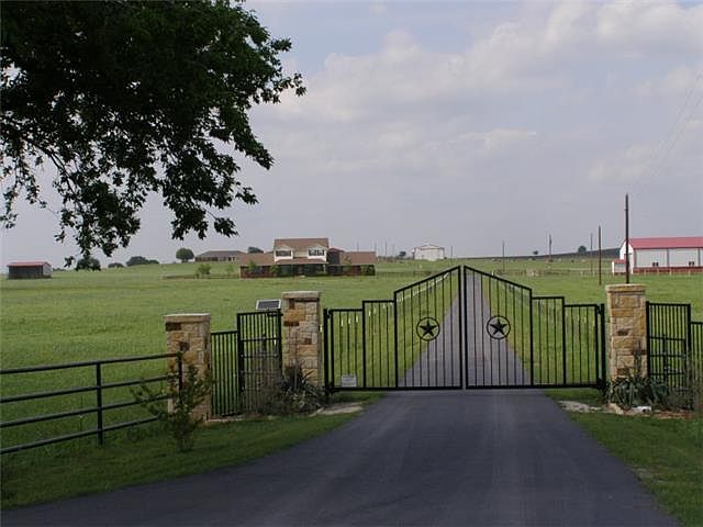 77ac located in East wise co north of Hwy 380. Paved road frontage on 2 sides, excellent fencing and cross fencing into 5 pastures. Large pond, deep water well, 2 story brick home w 4 beds, 2.5 baths, 2 living areas, 2 dining areas, eat in kitchen, granite countertops. 60x72 metal barn, concrete floor, two 14' remote controlled doors, two 16' roll doors, RV parking, 3 metal loaf sheds 30x30. Extensive asphalt drvwy, stn and bk entry w sec gate.