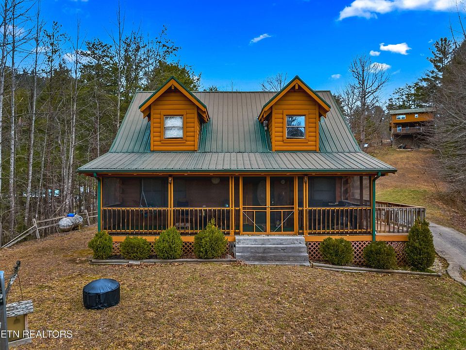This beautiful 3 bedroom 3 bath home has an OPEN FLOOR PLAN with natural Knotty Pine interior with Cathedral ceilings and a large stone fireplace. Has a Screened in porch with a view of the Smoky Mountains and deck along the side of the house. Kitchen with granite countertops adjoining the large dining room that has a custom made table and chairs. Kids will LOVE the open space upstairs for a play area or rec room. The master bedroom is very spacious enough room for a sitting area or dressing area. This property also has a 30x30 unattached garage with a fenced in area for your pets. This BEAUTIFUL CABIN is only minutes from all the attractions of Gatlinburg and Pigeon Forge. Local Restaurants and shopping just a short drive. Close enough to water stream to jump on a golf cart to go fishing. This cabin is FULLY FURNISHED... Ready for you to kick back and and enjoy! This is the cabin you have always dreamed of having! Great for income based property as well.