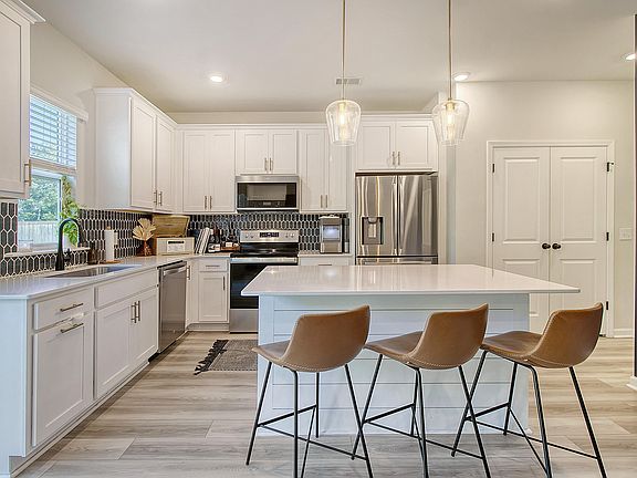 Adorable and move-in ready! Don't miss the opportunity that is 180 Cypress Plantation Road in Strawberry Station.This coastal inspired home features 3 bedrooms, 2.5 bathrooms, and encompasses 1,605 square feet of move-in ready space-offering you both the peace of mind of like-new construction and the latest in home design. (Builder upgrades listed below.)The front door opens into an ample foyer with coat closet, half-bathroom, and room for an entry table or ''drop zone.'' The living, dining, and kitchen areas are open and bright with views of the spacious backyard. The beautiful kitchen features quartz countertops, contrasting tile backsplash, high trimmed cabinets, stainless steel appliances, large pantry, and a center island with a dining bar and pendulum lighting.Upstairs you'll find the primary suite, full bathroom, laundry room, and two additional bedrooms. The primary bedroom is spacious with a ceiling fan and views of the backyard, wooded buffer, and adjacent pond. The ensuite features dual sinks with quartz countertops, a generous tiled shower with built-in bench, and walk-in closet. The spacious backyard is fenced-in with a patio and backs to a wooded buffer with an adjacent pond. BUILDER UPGRADES INCLUDE: Upgraded architectural style/design to front of home (elevation). LVP flooring throughout the home (no carpet). Hardwood tread on the staircase. Upgraded kitchen design package (shiplap trim and cabinets added to island, soft close cabinets, double trash cabinet, and custom built refrigerator cabinet). Upgraded light fixtures in downstairs half-bathroom, living room, master bedroom, and master bathroom. Upgraded shower in master bathroom. Premium lot due to its location and proximity to the backing woods and pond. Backyard fence. Strawberry Station is located off Old Hwy 52 near Hwy 52 in the rapidly growing area known as "Strawberry." This area has seen tremendous growth in recent years with new grocery, shopping, and dining options. And its proximity to both Moncks Corner and Goose Creek opens up a world of shopping, dining, and recreational options, all just a short drive away.