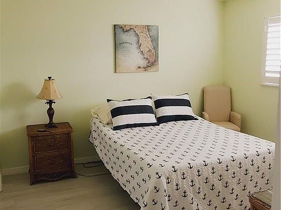Available 3/15/21. Beautiful first floor turnkey condo for annual lease. Fully remodeled and very nicely furnished. New paint, appliances, and flooring. Also includes a quaint fenced courtyard in front of the condo. The rate includes water, sewer, trash. Palm Crest Villas offers a beautiful, relaxing pool area, and is close to the beach, I75, and a multitude of award-winning dining, shopping, and golfing. Sorry, no pets or smoking.