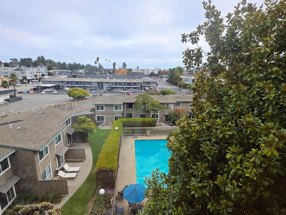 Enjoy an oversized primary bedroom with three closets, assigned parking, on-site laundry, and community pool access all in a prime central location! Views from the sunny deck.