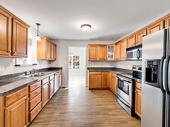 Welcome to this beautiful 3-bedroom, 2-bathroom home located in the charming town of Timberlake, NC. This house offers a modern and stylish living experience with its stainless steel appliances, laminate plank floors, and granite countertops. The cozy gas fireplace provides a warm and inviting atmosphere, perfect for relaxing evenings. The large backyard, complete with a fenced-in area, offers ample space for outdoor activities and gatherings. Enjoy the fresh air and sunshine on the back deck, ideal for morning coffees or evening barbecues. The storage shed provides additional space for all your storage needs. The bedrooms feature walk-in closets, providing plenty of room for your belongings. Ceiling fans throughout the house ensure a comfortable and cool environment during the warmer months. This house is perfect for those seeking a comfortable and convenient living space in a peaceful neighborhood. Don't miss out on the opportunity to make this house your home. Contact us today to schedule a tour and experience the charm and beauty of this Timberlake gem. Pets are allowed with approval + fees. 3x monthly rent in income, credit, and background checks required