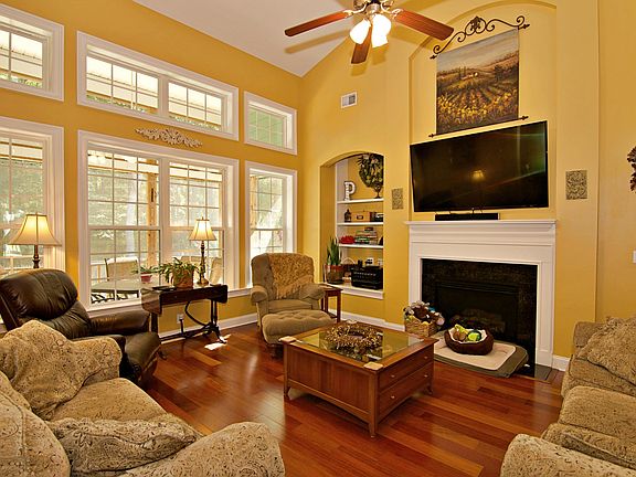 Beautiful Lowcountry home features high ceilings, gas fireplace and hardwood floors downstairs. Downstairs master with attached deluxe bath with shower and soaking tub. Also downstairs are a formal dining room, an office with French glass doors and a ''drop area'' coming in from garage. Upstairs there are 2 bedrooms and a spacious loft area. The kitchen has stainless steel appliances including a wall oven, gas cooktop, large island, cherry cabinets and tile backsplash. You will find plenty of storage space in this house from under the stairs to several large walk in spaces upstairs! The large screened in porch overlooks a fenced in, beautifully landscaped backyard. The front porch features trex decking.