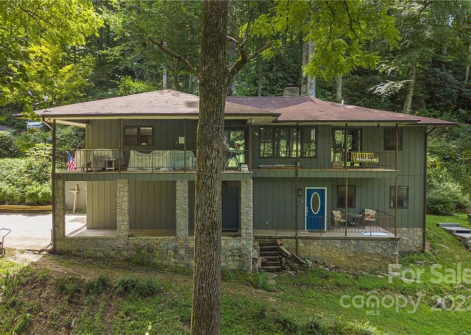 Enjoy this fabulous setting overlooking a bold rushing creek, beautiful golf course & wonderful mountain views! This 2 bedroom/3.5 bath home has so many possibilities....the lower level has a second kitchen, full bath, bedroom/bonus room & family room/office, all perfect for a rental or guests. Main living area has a fabulous open floor plan with a large kitchen, dining area & great room that opens onto an expansive covered porch for additional entertaining & relaxing! Spacious primary suite with access to a covered porch, & you can enjoy the sounds of the creek from almost every room. Second ensuite on main living level, perfect for guests. Two dumbwaiters to conveniently bring in your groceries or firewood. Large workshop off of garage, even with a half bath! Enjoy the lifestyle of living in the community of Springdale at Cold Mountain with the newly renovated clubhouse, restaurant, fitness area & heated pool.