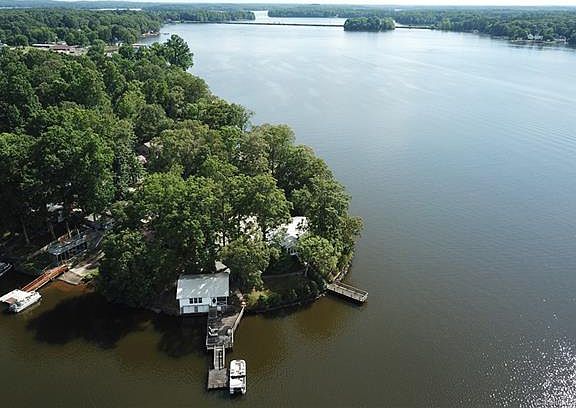 High Rock Lake home features 390' water frontage! Your own private refuge! This property features a 3Br/2Ba main home and a Boathouse with living quarters above (additional 627 sqft - 2 Br/1Ba). There are 2 piers, a dock and a concrete boat ramp. Views of the lake are spectacular! Great outside covered patio for entertaining. Roof was replaced on main house and boat house in 2020. You will not be disappointed!