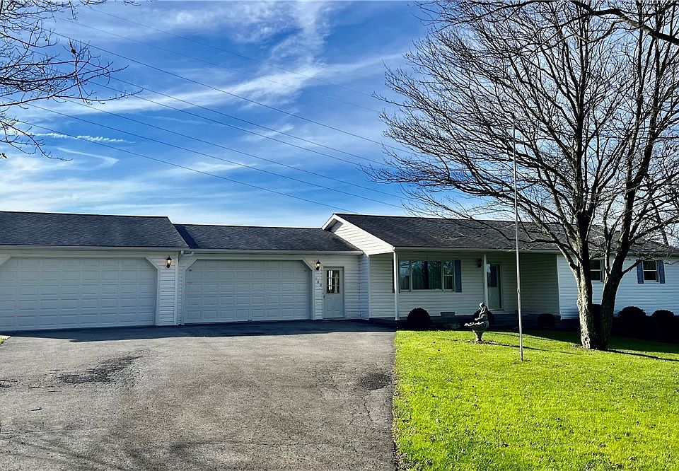 Immaculate one time owner ranch situated on the perfect country lot. Enjoy your morning coffee in the sunroom while taking in the serene view. Entertain large parties with this spacious kitchen with center island, roomy enough also for a table and hutch. 3 bedrooms and 2 baths on the main level and additional two bedrooms and bath off of the lower level family room. Bring the toys! Plenty of room to park 4 vehicles plus work bench area in the heated garages. Bonus shed/garage for a side by side or classic car. Attic storage galore! Every detail has been attended to…. Move right in! Hurry before this one is going, going, gone!