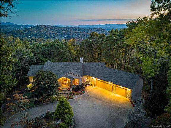 This home has it all: incredible views, privacy, county taxes with city amenities, main level living, open floor plan, abundant natural light, cathedral ceilings in living room, kitchen w/ fireplace, master on main w/ private deck, hardwood floors, laundry room on main, & an attached 3 car garage. Al fresco living is inspired by the (over 1000' sq ft!) multiple open decks & covered verandas. The lower level generously provides you with an office area, a family room w/ a gas fireplace, kitchenette/coffee niche, 3 additional bedrooms (Artists atelier? Yoga studio? Meditation center? Craft room? Possibilities are endless!), 2 bathrooms & a covered deck! In your low maintenance yard (no mowing e-v-e-r), you'll discover a tree house - for kids & adults who still enjoy the fun outdoors! Conveniently only minutes away from golfing at the Country Club, walking around Beaver Lake, & enjoying all of the amenities of downtown Asheville, the delightful lifestyle at 180 Dry Ridge is unparalleled.