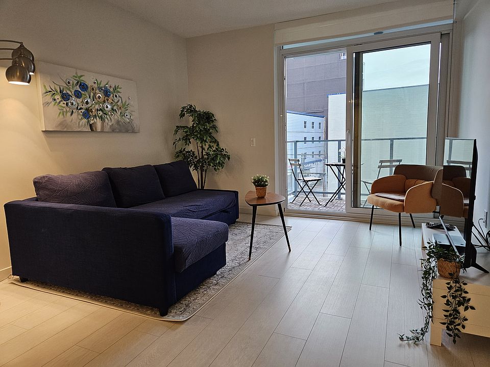 First 10 days free stay starting September 20, 2025 with 1 year signed lease 2021 BUILT FULLY FURNISHED & AIR-CONDITIONED - URBAN 2 BEDROOM APARTMENT WITH DEN AND UNDERGROUND SECURED PARKING (Living room can be converted in bedroom with glass sliding) near OLYMPIC VILLAGE (NEAR VANCOUVER DOWNTOWN) for rent (Apartment layout attached) 1 FULL BATHROOM and 1 POWDER ROOM IN-SUITE LAUNDRY Unit is also equipped with all branded appliances - Kitchen top stove, Inbuilt Cabinet (Refrigerator, Oven, Microwave, Dishwasher and Washer/Dryer) All cutlery, plates, utensils, spices, towels etc are included to use Hotel style living and everything included except Hydro. Rent includes Wi-Fi with 1GBPS speed and TV from Telus including NETFLIX It can accommodate upto 4 people (Queen size bed in bedroom, Sofa bed in living room and single bed in Den) Single bed is foldable/movable. Den can be used as office space as well This suite is steps away from the well known Coffee Shops, Breweries, Restaurants and Banks This building have Rooftop terrace and GYM It also have activity room that can be booked with charges on hourly basis Main Street - Science World Station and Olympic Village Canada Line Station are a short walk away AIR CONDITIONED Available : September 20, 2025 Fully Furnished Lease : 1 year 1 Secured Undergroud Parking Stall with remote fob Gym Access Pets Allowed (Damage Deposit Required) No Smoking Credit Check Required Hot water and Gas included Hydro should be paid by tenant All features are mentioned in description. Please read thoroughly