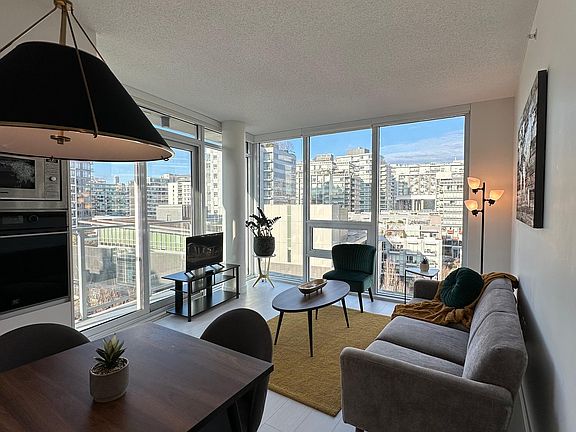 FURNISHED Beautiful modern condo 2 Bed 2 full Baths, built in 2021, ideally located in Mt. Pleasant on the border of Olympic Village. Walking distance to public transportation, sky train, buses. Minutes away to downtown Vancouver. Boasts expansive windows that flood the space with natural light. Offers 1 Den which is currently used as a walk in closet. 2 Queen Beds in each room 1 Parking included Gym and rooftop in the building Visitor parking . No Smoking, No Pet policy Renter is responsible for BC Hydro, and wifi 1 Parking is included with rent, plus visitor Building has amenities such as the gym, and rooftop, and BBQ space 1 year to rent, and renew if agreed Deposit is half month's rent