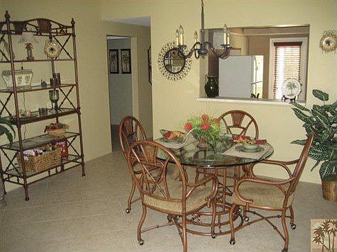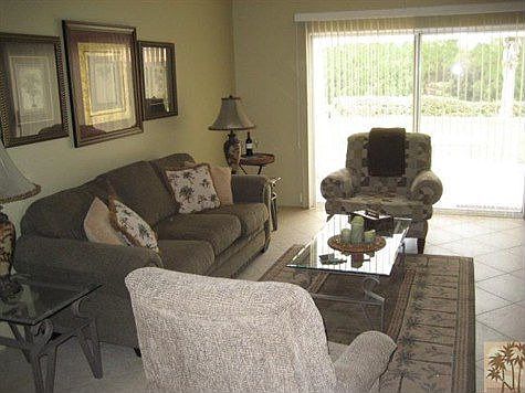 SINGLE STORY 2 bedroom 2 bath furnished condo located on a greenbelt at Desert Falls Country Club. Tiled living room, bathrooms, formal dining area and kitchen. Tastefully decorated and ready for move in. Memberships are available at Desert Falls or you can pay as you play. The use of nine lighted tennis courts and a newly remodeled fitness facility are included in the HOA dues. Brokered And Advertised By: Desert Falls Rentals and Sales Listing Agent: Ceil Berntsen
