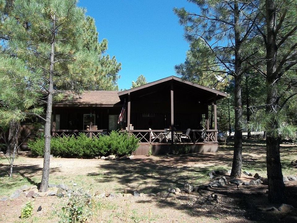 Available in April, mid September, October, November 2015. Bring your toothbrush and be prepared to relax in the cool pines. This beautifully maintained home is available furnished. The home has 3 bedrooms, 2 full baths, sleeps 9 comfortably. There is a gas fireplace in the great room for cool nights. Laundry room has washer & dryer.