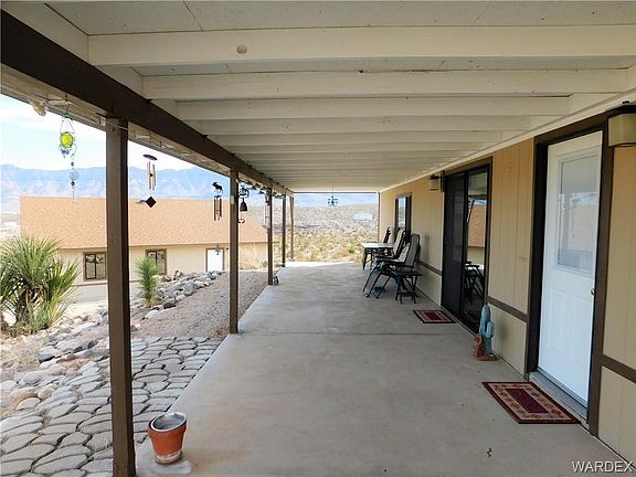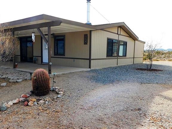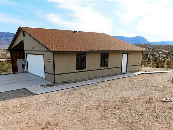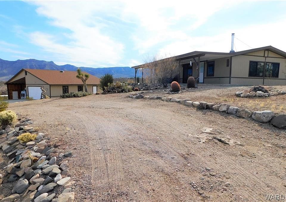 High on a Hill, on over three quarters of an acre, in the Meadview City Center, sits this 1986 Double-wide with 1278 sq ft of Desert Living space. Features that encourage a lifestyle of outdoor recreation and relaxation are two Covered Patios offering sweeping views of the Grand Wash Cliffs and Local Mountain Ranges, a Fenced Backyard, Easy-care Landscaping, a Boat Deep Garage and an RV Port with Hook-ups. The Open Floor Plan with a Generous supply of Windows allows the outdoors in throughout the main living area. A Wood Burning Fireplace in the Living Room makes for Cozy Winter Nights aided by a central Heat Pump. In the Summer, Central Air and Deluxe Window Coverings help cool the indoors. A Spacious Dining Area with a Wall-to-wall Built-in Hutch makes eating with family and friends convenient and comfortable. The All Electric Kitchen is equipped with up-graded appliances, Walls of Cupboard Storage, Loads of Counter Space and an Eat-in Counter. The two Bedrooms have Large Closets and the Master has a roomy Bath with a Walk-in Shower and Plenty of Cupboard, Linen and Counter Space. The condition of this Leisure Living Home is Move-in Ready and offers an approx 14 x 9 Bonus Guest, Craft, or Office Room with its own entrance. The approx 24 x 40 Spacious Garage can hold a Boat, an ATV and a Large Truck. Partially Finished and insulated, the Garage Walls and Overhead Rafters sport Shelves and Ledges for Storage. A workshop with Lights and Electricity add to the many uses of this Oversized Garage. Attached is an approx 24 x 40 Pass-through RV Port with Electric Hook-ups that is permitted for enclosure. An HOA Membership invites use of the Meadview Community Clubhouse, the Swimming Pool, Tennis Courts and a Playground. The Lake Mead Boat Launch is about a half hour away. ATV/Hiking Trails are laced throughout the Grapevine Mesa. For Leisure or Play, this Hilltop Getaway invites you to enjoy the best of Desert Life.