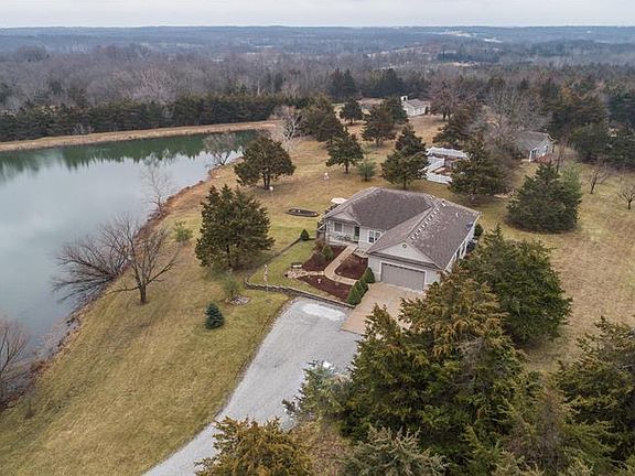 Don't miss this Peaceful, Serene and Private 5-acre setting with updated 4 BR, 3500 plus sq. foot walk-out ranch minutes from Columbia. Immaculate, low maintenance self-sustaining home with shared 2-acre pond, detached workshop mancave (kitchen, bathroom, greenhouse and workshop or vehicle area), fenced, irrigated, raised garden beds and fruit trees! Updated kitchen and baths with plentiful main level hardwood flooring and newer HVAC. Enjoy the sunroom or deck overlooking the pond and back yard. Large master bedroom and bathroom with remodeled shower, tub and vanities. Main level laundry. Family room with wood burning stove, 2 additional bedrooms, theater room, bath and unfinished area on lower level. Endless possibilities for hobby farm or raising kids. Close access to 63 and 70!