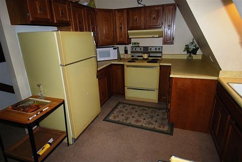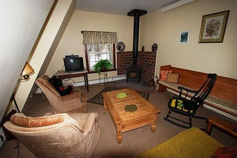 Rented unfurnished. This apartment sits atop a garage, attached to one of Stowe 's very first lodging properties with the rustic charm of a bygone era. The apartment interior takes you back in time, with cheerfully colored kitchen appliances and flowered wall paperings. Notable features include large windows with wooded views, full bath, and laundry room (on ground floor of building), working woodstove, and dishwasher. NOTES: Propane Heat & utilities extra. Direct TV is included in rent. Non-smoking property. No pets preferred but please note that shared access to building requires dog-tolerant tenant(s). Good credit & references a must. First, Last, Security, & $150 cleaning fee (because this is a furnished unit) are required before move-in. Call Rich Drill 802-505-0572 for more info. and/or to request showing.
