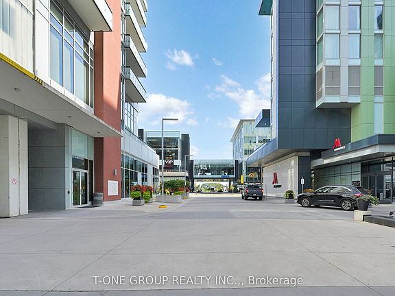 Welcome to luxury living in the heart of Downtown Markham! This ultra-bright corner unit offers 2 bedrooms + den, 2 bathrooms, soaring 10ft ceilings, floor-to-ceiling windows, and an oversized balcony with southwest exposure. The modern kitchen with quartz counters & centre island flows seamlessly into the open living space, perfect for entertaining. Enjoy a highly functional layout with a spacious primary suite, second bedroom, and versatile den for work-from-home. Rarely offered P1 parking spot located just one floor down and right next to the elevatorunbeatable convenience! Connected to the Marriott Hotel with exclusive access to indoor pool, gym & world-class amenities. Steps to Cineplex, GoodLife Fitness, shops, banks, restaurants, transit, Hwy 7 & 407. Whether youre an investor or end-user, this move-in ready unit offers the perfect blend of lifestyle, comfort & location. Dont miss your chance to own in Markhams vibrant downtown core!