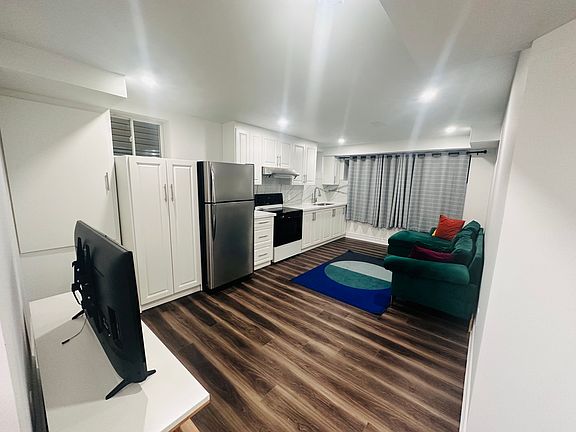 Brand New Never Lived In, Basement Apartment. Located in new family friendly neighbourhood close to all amenities. This 800 Sq.Ft unit features 2 spacious bedrooms, large open concept living space with gorgeous kitchen, bathroom, ensuite laundry. Private entrance. Street Parking Available! This apartment is vacant and ready for immediate occupancy. Tenants responsible for 40% of total utilities. Unit is partially furnished (Coach, TV Stand, TV, Dining Table and Chairs. Private Entrance. No Parking, but Street Parking Available.