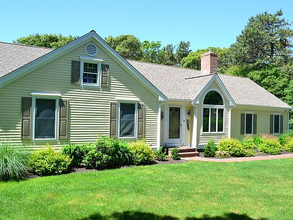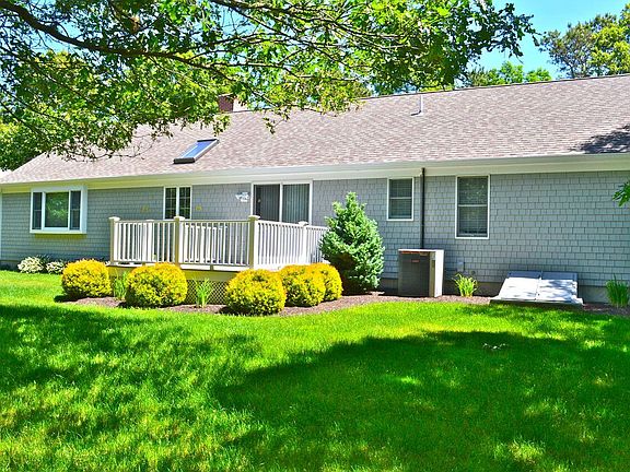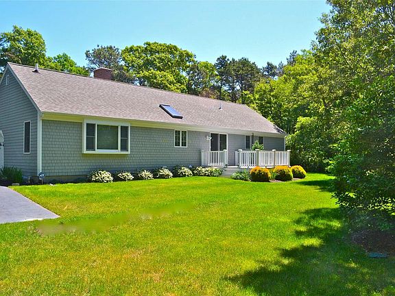 Beautiful, pristine Ranch with exceptional curb appeal located at the end of desirable Far Fields Road in the beautiful bayside town of Brewster. Very private location and sited nicely off the road you'll enjoy the close proximity to the Rail Trail, Conservation, Ponds, Shops, Restaurants and most importantly the Bay. Step inside this beautiful home and find a spacious living room with cathedral ceilings, gas fireplace, wood floors and large windows letting in plenty of natural light. The kitchen and dining area also have cathedral ceilings with a skylight, wood floors, breakfast bar and sliders to the deck. Beyond the kitchen you will find another spacious living area with large windows looking onto the private back yard and access to the one car garage. As you go down the hall back towards the other end of the home you will find a laundry area, basement access, attic access, full bath with a tub and three bedrooms the third having its own full bath. There is a huge, dry and clean basement with a bulkhead, heat, on demand hot water and a high efficiency gas furnace. Central a/c, gas heat, alarm system, irrigation, central vac and so much more to love in this delightful home.
