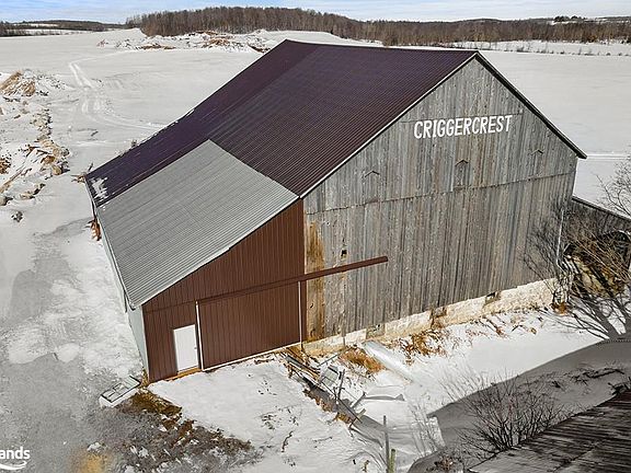 Surrounded by pasture and forest, this delightful farmhouse sits on almost 95 acres of countryside land and is located centrally between Owen Sound, Sauble Beach & Saugeen Shores. There are 70 workable acres, 50 of which are tiled resulting in excellent yields. The large bank barn features two drive-in areas for storage of equipment and supplies, one of which is totally enclosed. There is hydro and water supply to the barn. Accompanying the barn is a drive-shed with parking for two cars plus a multi-functional workshop. The updated home features 3 bedrooms and 1.5 bathrooms. The main level is centred around a large country-style kitchen with lots of room for prep, cooking and entertaining. Adjacent to the kitchen is a spacious living room and traditional dining room. The mudroom, laundry and powder bath can be found off of the kitchen. Maple hardwoods are found throughout. A spacious addition to the back of the home features a family room, cozy sitting area, wood-burning stove and office. The second level features 3 bedrooms and a generous sized 4 piece bathroom. The exterior of the home is beautifully landscaped featuring a 16'x32' in-ground salt water, heated pool. Take your ATV out on the trails leading through 5 acres of hardwood bush. An active aggregate pit with a Class B license and solar unit on the property also generate income for the farm. Live the charmed country life on this quintessential Ontario farm property. 2022-03-31