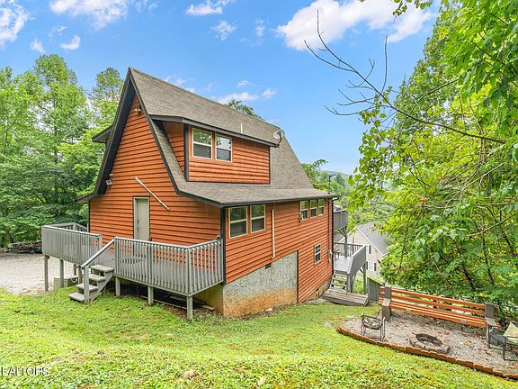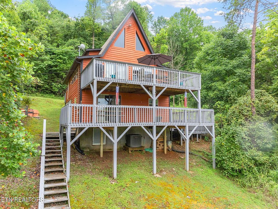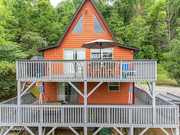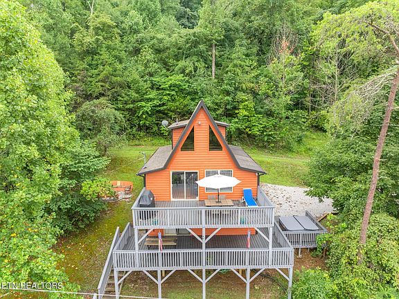 Long Haven Cabin is now on the market!! This secluded 4-bedroom 3-full bath home has a very nice balance between rental history and owner enjoying all the things a lake home offers. This cabin is located near Flat Hollow Marina and overlooks beautiful Norris Lake. The home is situated on three lots (total acreage of all three properties is .78), one the home sits on, another that could be a future build or just leave as is for privacy. The third deeded lot is used to access the lake which features new partial concrete steps to a TVA permitted covered single-slip concrete truss dock with a jet ski port and patio. Two bedrooms, full bath, kitchen with island, eating area, and family room with Flat Screen TV are all on the main level, as is access to the completely new composite deck that overlooks Norris Lake. Outside is a fire pit area for you to enjoy sitting with your friends. There is a guest bedroom with a full bath on the upper floor. Moving downstairs to the basement you'll walk into the rec room which has a foosball table and large screen TV. There is a bunk bedroom as well as a full bathroom and laundry room in the basement. The utility closet is also accessible from the basement which features a new 2021 HVAC system for the home. Outside is another completely new composite deck with a pick-nick table that the kids or adults can hang out on. You can access the brand-new hot tub and the lake from the basement level. Long Haven Cabin also features lots of parking as a parking area has been added to the lower part of the main lot. This is a turnkey home with a nice rental history. Come see it today.