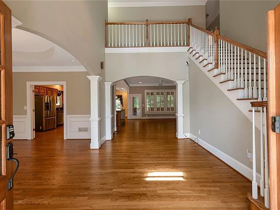 Original William E. Poole Design Blackberry Lane floorplan, modified for this country setting. Custom thick molding package and builder upgrades galore. 5 spacious bedrooms plus bonus room upstairs and expansive primary suite on main level. Hardwoods in the entertaining spaces on the interior and thoughtful porch, deck and patio exterior spaces for large gatherings or tea and quiet conversation. The three season porch off the family room takes full advantage of the natural wood setting and antique barn on the backside of the property. 3 finished floors of living and unfinished space for storage. Owner suite closet has stacked Maytag washer/dryer and laundry room available upstairs in bonus room. Meticulously maintained landscaping and the views from within the home looking out the front are stunning. Beautiful pond/lake with fountain and winding driveway to peek your first time guests' interest until they are wowed entering the double doors to this wonderful family home. Come and see this lovely country estate in the small, charming town of Waleska.