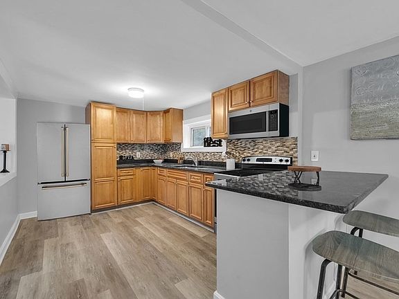 - Features: Flooring - Vinyl, Countertops - Stone/Granite/Solid, Kitchen Island, Open Floorplan, Remodeled, Stainless Steel Appliances