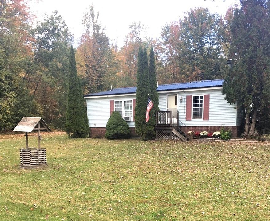 Move right into this spacious 2 bedroom, 2 bath home located on 4.59 peaceful acres! In addition to a brand new roof and furnace in 2020, this home also offers a large addition (not reflected in the tax records) adding an additional 264 sq ft of living space! Addition is heated and currently has a hot tub, 3 sliding glass doors, (unfinished) skylights and ample space for entertaining. This property offers public water, a large two car garage, and trails with a pond out back. Home has two wood fireplaces for additional heat sources. Enjoy the composite wrap-around deck to enjoy the peaceful scenery. New carpeting will be installed in both bedrooms before closing. Home is being sold as-is, and most furnishings are negotiable. Don't miss out!