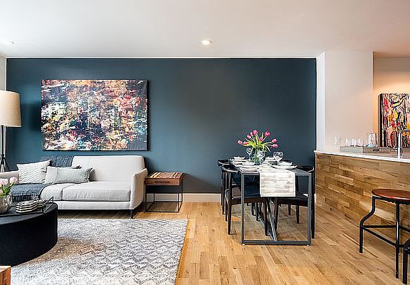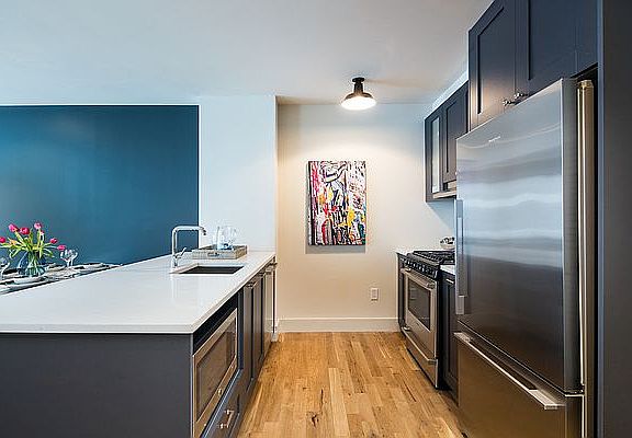 206 is a lovely east facing one bedroom home that features a modern kitchen with stainless steel appliances, hardwood floors and in unit Bosch Washer & Dryer. Kitchens include custom imported cabinetry and mill work, quartz countertops, stainless appliances from Bosch and Fisher & Paykel. Situated on an acre of land, 180 Franklin Avenues modern new rental residences and creative amenities border Brooklyn's trendy Clinton Hill and historic Bedford Stuyvesant neighborhoods. Bold, modern, and fun, with a shot of urban luxury, studios, 1 & 2 bedrooms, and duplexes feature state of the art kitchens and bathrooms as well as in-unit washer dryers. Select units also offer large private outdoor patios. Of-the-moment amenities include a vibrant social lounge with pool table, full circuit and cardio fitness center, sound proofed music rehearsal space, artist workroom, bike storage, and on-site parking. 180 Franklins fully landscaped roof deck and features barbecues, outdoor seating and dining areas. The neighborhood is dotted with parks, diverse eateries, and gorgeous turn of the century brownstones and row houses. An easy trip to the Pratt Institute and eclectic local shops, 180 Franklin Avenue is also close to the G, A & C subway lines. Images are of a similar unit.