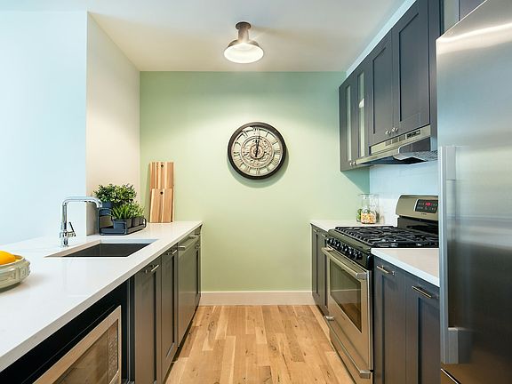 220 is a bright west facing 1 bedroom featuring a modern kitchen with stainless steel appliances, hardwood floors and in unit Bosch Washer & Dryer. Kitchens include custom imported cabinetry and mill work, quartz countertops, stainless appliances from Bosch and Fisher & Paykel. Situated on an acre of land, 180 Franklin Avenues modern new rental residences and creative amenities border Brooklyns trendy Clinton Hill and historic Bedford Stuyvesant neighborhoods. Bold, modern, and fun, with a shot of urban luxury, studios, 1 & 2 bedrooms, and duplexes feature state of the art kitchens and bathrooms as well as in-unit washer dryers. Select units also offer large private outdoor patios. Of-the-moment amenities include a vibrant social lounge with pool table, full circuit and cardio fitness center, sound proofed music rehearsal space, artist workroom, bike storage, and on-site parking. 180 Franklins fully landscaped roof deck and features barbecues, outdoor seating and dining areas. The neighborhood is dotted with parks, diverse eateries, and gorgeous turn of the century brownstones and row houses. An easy trip to the Pratt Institute and eclectic local shops, 180 Franklin Avenue is also close to the G, A & C subway lines. Images are of a similar unit. move in 12/15