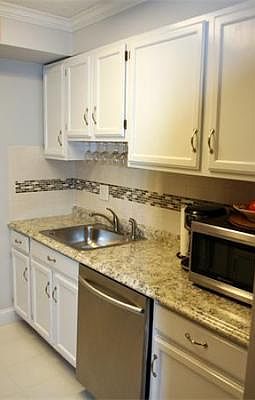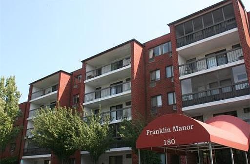 Lovely two bedroom unit offering many updates at Franklin Manor. Enter through unit hallway to small entry area which opens to spacious Living room and Dining room with Bamboo flooring. From here you can enjoy the enclosed three season porch. Updates include new appliances in Kitchen, cabinets and granite counters. Clean and bright updated bathrooms also! Master bedroom has private bathroom and access to the enclosed porch. Nicely painted and well maintained unit. Extras include 2 car parking, workout gym and racquet ball court. Couldn't be easier to shop or find a great restaurant.