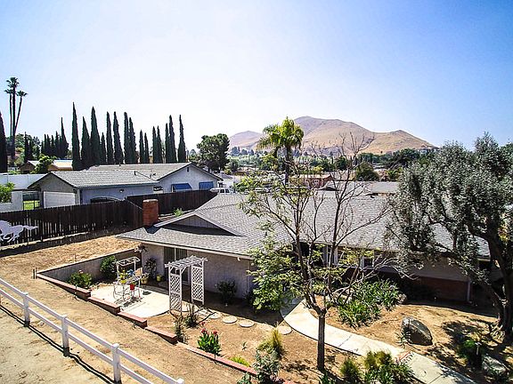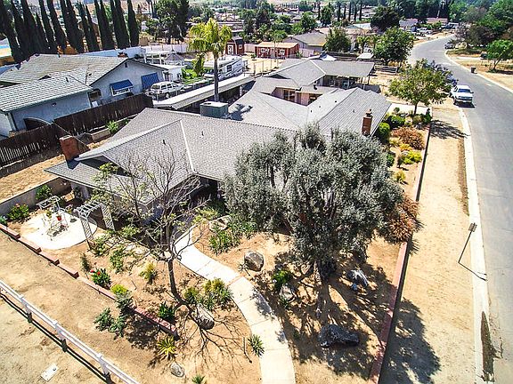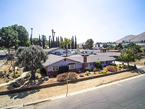 HUGE PRICE REDUCTION! Great Location! One of a kind, Single story located across the street from the Bluff. Great for large family or entertaining. Features 4 bedrooms, 2.5 baths, living room with fireplace, full bar with lots of storage cabinets, ice maker and sink, Large family room with mountain lodge design, wood beamed ceilings, stain glass windows, large court yard off living room, very private for entertaining, in ground spa, master bedroom features fireplace, sitting area, master bath, sliding door to patio area in front, 3 additional bedrooms, 2 bedrooms have sliding doors that open to the Lodge/family room area, one bedroom has new laminate flooring, hall bath with tub/shower, dining room off kitchen, kitchen features newer over sized sink and new brushed Bronze faucet, tile counter and floors, double oven, Kenmore appliances, huge bonus room toward back of home with 1/2 bath, inside laundry room, tank less water heater, back door leads to backyard, lots of parking, RV parking and hook ups, RV dump, over 1,000 square foot detached garage, 1 stall has a built in freezer, not being used, 220 in garage, great work shop area, storage shed in back for storage or feed/tack room. 2 horse corrals with partial covers, covered parking at garage area. 2nd laundry room W/water heater & bath off courtyard, they are not in working order seller has never used them, sold without repair. In ground spa is working, but sold in AS-IS condition due to the age of the spa.