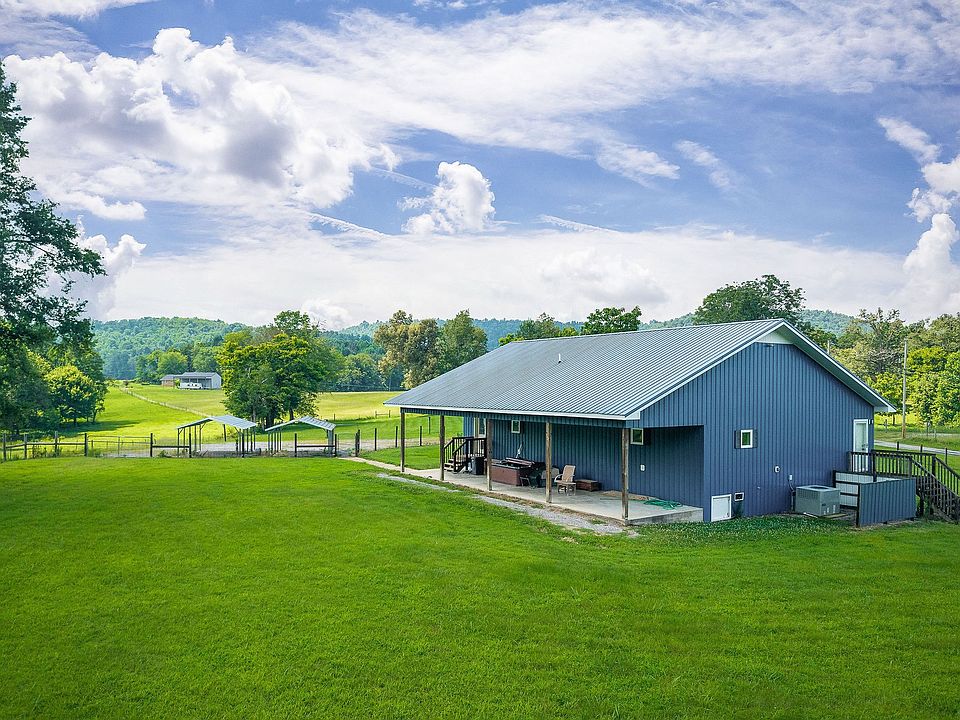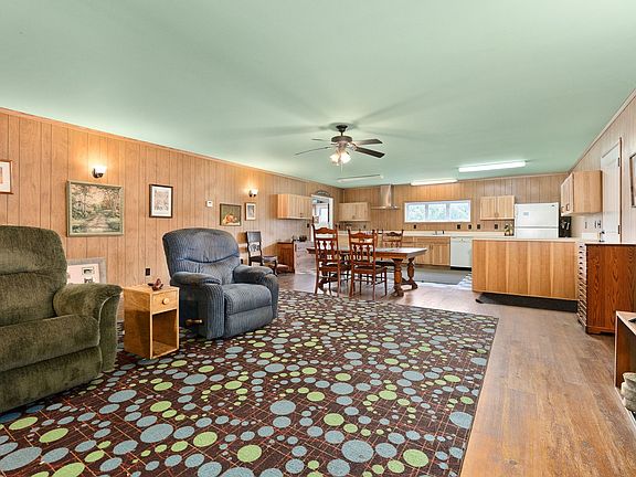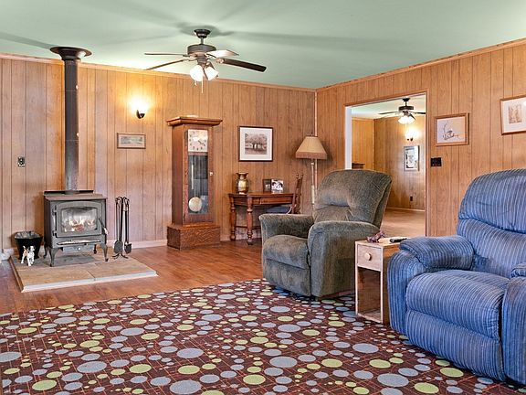 Welcome to peaceful rural living! This charming barndominium-style home sits on 11.62 acres of lush pasture and woods, offering privacy, open skies, and room to roam. Inside, you'll find an inviting open-concept layout with a spacious kitchen and living area, cozy wood stove, and a huge walk-in closet. The oversized bathroom features a tile walk-in shower. Spacious laundry room conveniently located off the kitchen.