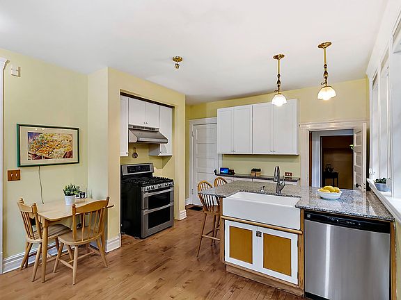 Welcome Home to this well maintained Victorian perfect for your new home in beautiful Riverside, Ill. Perfect location to downtown Riverside with the Metra train and nearby schools. Enjoy evenings on the large shaded wrap around porch in a park-like setting. Entertainment sized foyer, formal living room with original fireplace and built-in cabinet in dining room. 3rd floor perfect for bedrooms or guests accommodations--includes a common area and a bathroom. basement offices and a rec room -- four floors of living space! Professionally landscaped; fully fenced in side and backyard with mature trees. Also features back patio and gravel dog run. Large master bedroom with walk-in closet. Oak and maple hardwood floors on two levels. Features an outdoor lighting system. Central air throughout. ADDITIONAL DETAILS: New water meter 2023, new water heater 2021, new furnace and A/C 2018, new garbage disposal 2020, new washing machine 2021, kitchen update 2018, wrought iron fence painted 2023, porch painted 2023.
