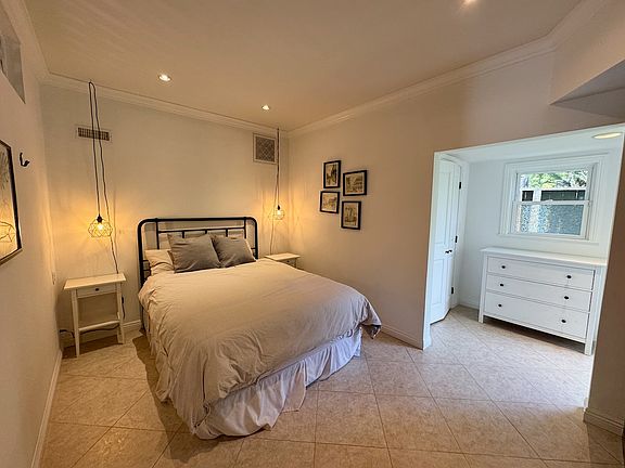 Imagine living in a private resort ..welcome to the lower level of 180 High Drive! Located a few blocks from the beach, near to everything in town (very walkable), hiking trails are a block away, a block from the Festival Of Arts. This roomy apartment with high ceilings offers location, privacy, and a full size pool. The living room is furnished with nice comfortable furniture, a tv with surround sound. The bedroom has a queen size bed, a walk-in closet as well as a built-in cabinet and a door to the exterior. The bath features marble counter with cobble sink and a large tiled shower. The full kitchen has epic granite countertops with an adjacent small counter for in kitchen dining ect. The adjoining sunroom boasts canyon views with French doors leading to the pool area. Italian tile throughout unit. There is a matching granite bar table outdoors next to the fireplace. Dine Alfresco or lounge by the pool in privacy. Utilities are included *. Area in garage for laundry. Parking in the driveway. This lower unit is available furnished or unfurnished for a 12 month lease. Sorry, no pets. * owners pay first $200 of water, excess is tenants responsibility.