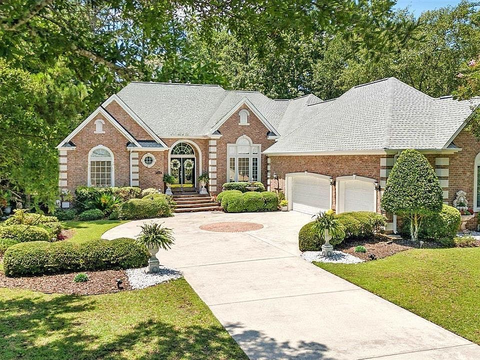 180 Highwood Circle is a distinguished custom residence located in the sought-after gated community of Highwood at Prince Creek - Murrells Inlet, South Carolina. Backing to a serene wooded conservation area on .81 acres, this beautifully maintained 3 Bedroom with Bonus Room, 3 Full Bath, 1 half bath Brick home with Stucco Accents offers timeless design, dramatic architecture, and luxurious living throughout. Curb appeal abounds with professional landscaping and an inlay brick medallion adding a refined centerpiece to the expansive driveway and Oversized Three-Car Garage. The double French doors Welcome you to a Grand Foyer with marble tile entry laid in a timeless diamond design and rich mahogany floors flow into an elegant Formal Dining Room enhanced by lighted double Trey Ceiling and refined millwork. The dramatic Formal Living Room boasts 18-foot soaring ceilings, a statement double-paddle Ceiling Fan, and a two-sided fireplace shared with the luxurious Primary Suite. French doors, stacked large windows, and architectural detailing bring in natural light which highlights the thoughtful Open Floor Plan. At the heart of the home is a Chef’s Kitchen equipped with new Stainless Steel appliances, Granite Countertops, ample Cabinetry with pull out drawers, a Walk-In Pantry with a convenient butler’s station—perfect for hosting or everyday ease. Just off the Kitchen is a welcoming Great Room or gathering area that flows seamlessly into the Four Seasons Sunroom, creating an open and connected space ideal for everyday living and entertaining. A turned wood staircase leads to a spacious Loft offering flexible use as a Home Office, studio, or Additional Living Space. The huge Primary Suite is a private retreat, featuring a generous Sitting Area, Wet Bar with beverage refrigerator, Fireplace, lighted Double Trey Ceiling, 15ft Custom Walk-In Closet with built-ins, and a Spa-Style En-Suite Bath. The beautiful cultured marble flows from the Double Sink Vanity to the glass enclosed Shower with Bench and the surround of the inviting jetted Soaking Tub. Guest bedrooms are positioned for privacy and comfort, each spacious and well-appointed with their own En-Suite Baths. Enjoy the outdoors year-round from the spectacular Four Seasons room with its soaring cathedral-style octagonal ceiling and tranquil views of the lush backyard. Step outside to a sprawling 1,800 sq ft deck, ideal for elegant gatherings or peaceful afternoons. Multiple fountainhead stone sitting areas along the garden-like backyard retreat and mature landscaping set the scene for unforgettable evenings under the stars. The 5 star Chef's Grill and all outside furniture remain, offering a turnkey setting for enjoying this tranquil garden oasis. Additional features include a new roof (2024) that accentuates the home’s bold rooflines and provides peace of mind. Designer chandelier ceiling fans and thoughtful modern lighting are carried throughout the home, enhancing every space with both style and function. Energy-saving thermal film tinting on the windows enhance efficiency and UV protection. 3 Mini Splits to convey, Le Bleu Water Filtration System, front and backyard Rainbird irrigation, new Maytag Washer & Dryer, and new interior paint. In the gated community of Highwood, residents enjoy exclusive access to an Amenity Center that includes a Clubhouse, Resort-Style Pool, Workout Room, and Tennis Courts. Located within the master-planned Prince Creek community, you’re just minutes from the TPC Golf Course, the Murrells Inlet Marsh Walk, shopping, fine dining, marinas and area beaches. Experience a rare blend of luxury, lifestyle, and location—schedule your private showing today.