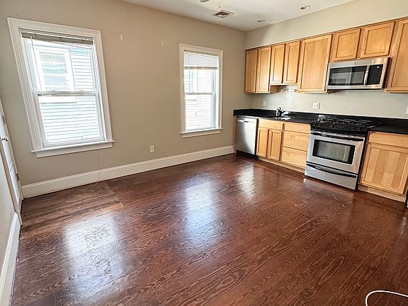 Renovated 4-bedroom apartment on Hillside Street in Mission Hill featuring an open kitchen and living room with stainless steel appliances, gas range, dishwasher, and built-in microwave. The unit offers hardwood floors throughout, central air, ceiling fans, excellent closet space, a large modern bathroom with dual vanities, laundry in unit, and a spacious private deck. Conveniently located near public transit, neighborhood shops, restaurants, local parks, and area universities including Northeastern, Wentworth, MCPHS, and Harvard Medical School. We do not discriminate on the basis of age, race, color, sex, national origin, religion, disability, familial status (having children under the age of 18), military status, gender identity, sexual orientation, marital status, or receipt of public assistance including housing vouchers. Tenants are responsible for all utilities.
