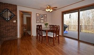 Beautiful Esko ranch on 4.85 acres! Gleaming hardwood floors, natural woodwork and a brick fireplace accent the main floor. There is a bright and cute eat-in kitchen, as well as formal dining with patio doors to the back deck. The lower level features a huge family room, 4th bedroom, 1/2 bath and sauna. There is great storage space! Enjoy benefits like a private wooded setting with a creek, a 2 car attached and insulated garage and a welcoming front porch. Close to town but private - move right in, relax and enjoy! (Compliant septic.)
