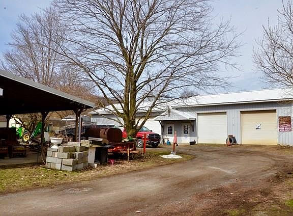 Here's a unique BUSINESS opportunity! Neat, 2 bedroom ranch (once a 3 bedroom, could easily be converted back) w/a 1 car attached garage (plumbed for a bathroom!) Solid back deck, handicap accessible. Full, dry basement, dual heating system (LP/coal), with a new steel roof, less than 3 years old! But that's not all and here's where it gets interesting! This property also includes a well established home based auto business! (Many other possible uses!) 1440 sq. ft. shop building w/lift, insulated, concrete floor, coal heat. Adjoining storage bldg. w/gravel floor. See disclosures for incl.items!