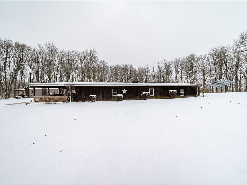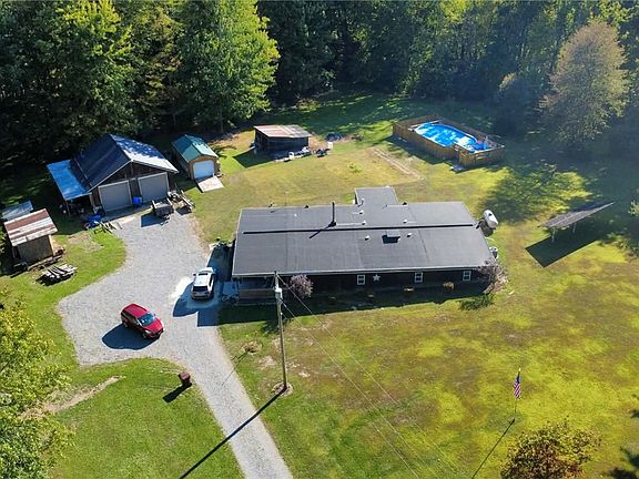 Welcome to this custom built, 1 level home, nestled on almost 10 acres! What was once fully underground has arose into a private sanctuary with space to enjoy inside and out. Several out buildings are available for hobbies, storage or parking. In the summer, enjoy the fenced in above ground, heated pool, or just sit and relax on the large, covered porch. Ready to go in? The open concept leaves the main living area open to the imagination. From a beautifully updated kitchen with granite countertops, a large island and stainless-steel appliances, you won't miss anything while making something delicious. There is 1 full bath with a large, jetted tub to relax at the end of the day before you retire to one of the 4 bedrooms. If you are worried about heating and cooling this large space, that's covered too! Solar panels and a wood burner can help make those utilities minimal. The property was recently appraised and is ready for someone new to call it home.