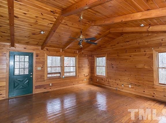 Log cabin nestled on almost 10 acres. This cabin offers unfinished basement, wood floors, covered back deck, covered rocking chair front porch and a creek that runs in the back. The majority of the lot is wooded, which is perfect for the privacy lover. There is a small amount of land that is cleared in the front of the property. The basement is plumbed for a second bath and studs are up for another bedroom. The cabin is sold "as is", so seller will not be making any repairs.