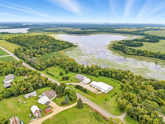See 3D Tour. WOW! This impeccably maintained, one-owner, magnificent property might just be a once in a lifetime opportunity! 11+ acres. 1,600+ feet of private lakeshore. A 4,500+ finished square foot, custom-built walkout rambler. 2,368 square feet of heated & insulated garage space with 10 x 10 doors. A steel outbuilding with 6,560 total square feet, divided into three sections - 40 x 32 garage/shop, 80 x 50 barn & 80 x 16 lean-to. And those are just the really high-level highlights. This property is so amazing. The house exterior has steel & brick siding, a 4-years-young architectural roof, Marvin Integrity windows & doors, a 351 square foot, concrete, covered front porch, a 520 square foot deck & a 776 square foot concrete patio that both span the entire length of the home. The main level inside features solid oak hardwood & ceramic tile flooring throughout, solid oak millwork & 36" wide, solid oak 6-panel doors, built-in cabinets galore and enormous & open spaces. The rooms are large, the ceilings are tall, and natural light floods the space. The main level also features three bedrooms and three bathrooms plus a laundry room - rare for a rambler - and the private, primary suite connects directly to the deck. Downstairs in the walkout lower level, you will find an XXXL rec/family room, a 4th bedroom and bathroom, an enormous hobby room and a heated workshop. The forced air HVAC has separate zones up & down and the lower level floors are all heated too, with a multi-zone Wirsbo system. The Lennox Elite furnace & AC were new in 2017, and the well pressure tank and Brassmaster+ water softener are only a few years old. The home is extra-rigid structurally, with 18" on-center floor trusses. Almost every wall was professionally painted with modern & neutral paint in August of 2025. The list just goes on and on and on. There is even a generator switch, dual 200A electrical service with lots of electrical upgrades in the heated garages, and plenty of space for RV parking out front. The home is situated just minutes from all the conveniences offered in Saint Michael, Albertville and Hanover, as well as the historic downtowns of Rockford & Buffalo. This property is a rare find, and we are genuinely excited to present it on behalf of the amazing family who owns it.